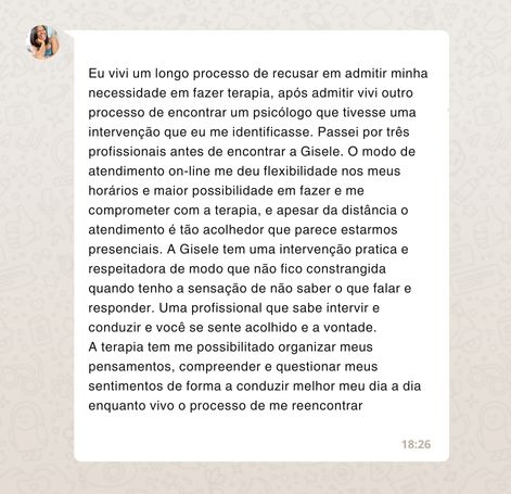 A consulta acontece pela plataforma do Google Meet, o link do nosso encontro será enviado via whatsapp alguns minutos antes do seu horário agendando.